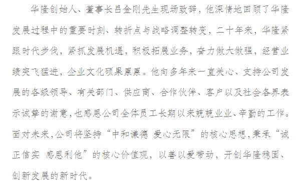 感恩同行 善爱未来 ——华隆食品隆重举行二十周年庆典